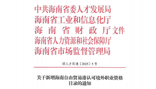 - 中共海南省委人才发展局等部门关于新增海南自由贸易港认可境外职业资格目录2025-11-03