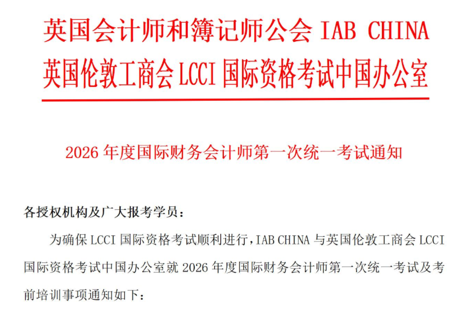 - 2026年度国际财务会计师第一次统一考试通知2025-09-28