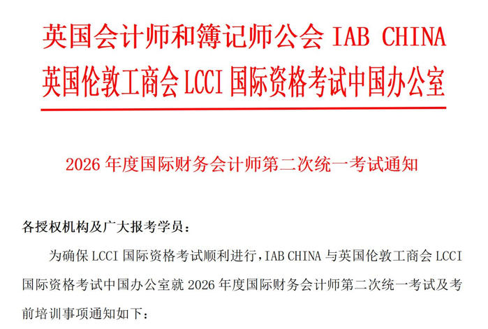 - 2026年度国际财务会计师第二次统一考试通知2026-02-28