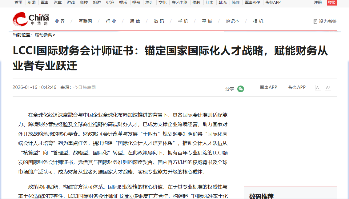 中华网:LCCI国际财务会计师证书:锚定国家国际化人才战略,赋能财务从业者专业跃迁